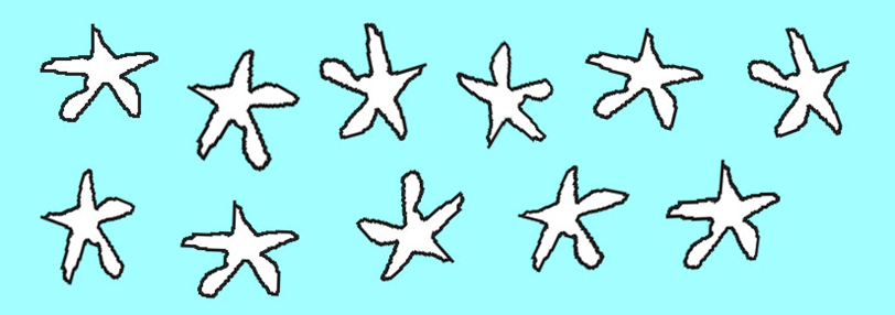 But she’s a budding artist and did not want to draw star symbols to represent living starfish. Instead, she traced starfish outlines she photographed the day earlier at the beach. Her resulting sketch is a group of contorted starfish (Image 4). And having expected symbolic star shapes, these images are not readily recognized as starfish. We may consider her oddly shaped starfish to be poorly drawn. Maybe they were…or maybe she’s an artistic genius drawing her own impression of Picasso-like starfish.