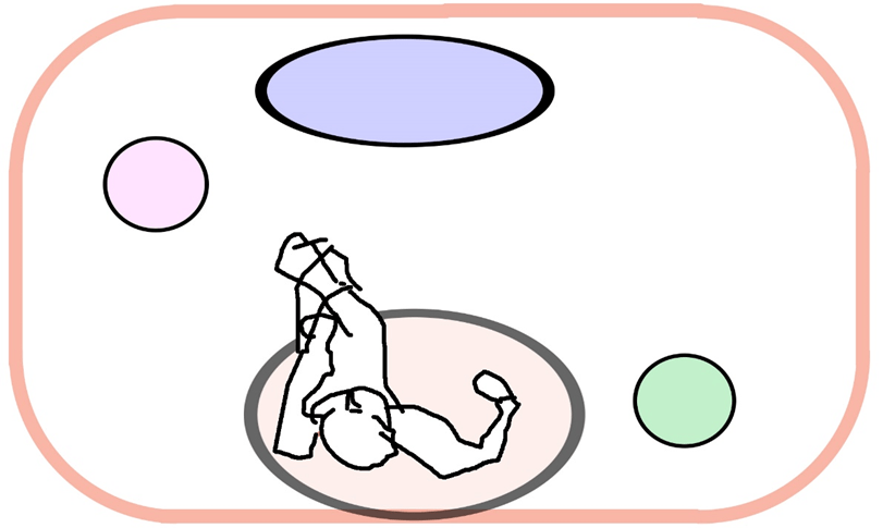 A round room with round furniture and round windows and doors may extinguish the game (Figure 6) and lead me to a totally safe zone. But I find it impossible to become securely oriented to my surroundings when there are too many rounded, non-orthogonal forms in a space. Put another way, I may be addicted to the game.