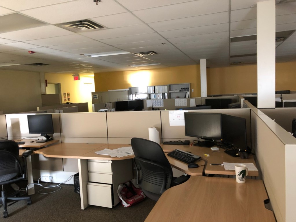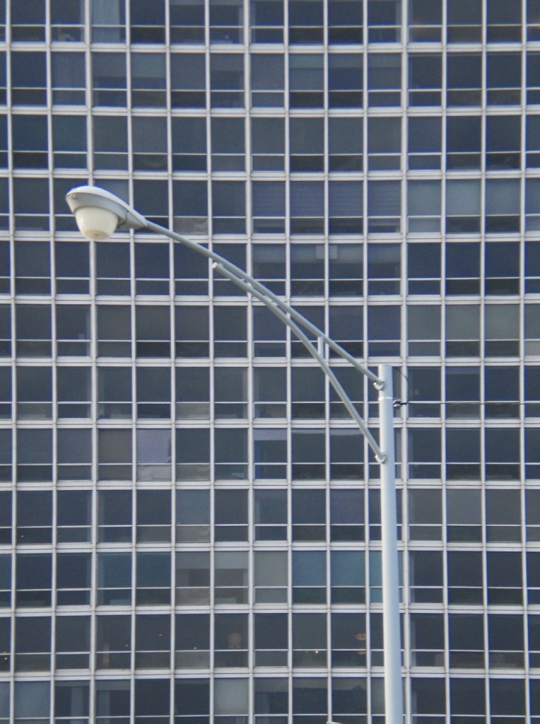 I had just left my daily safe cubic zone – my work cubicle in my office building. It was safe and uniformly packed with cubicles in a carefully detailed grid on a square floor plan in my cubic office building. Cubicle space, carpet patterns, bookshelves with rectangular books, desktops, cubicle partitions, computer monitors, ceiling tiles, HVAC vents, lights (below), and even the exterior windows and column grid (right) were shaped and arranged to accentuate cubes and rectangles.