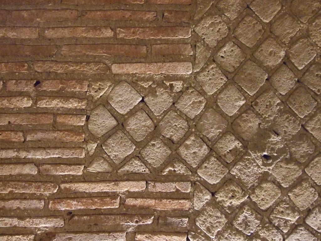 Roman bricks were used in a variety of types of brick walls, depending on how bricks were arranged within the wall. The most common wall-building technique was Opus latericium, where bricks were placed as outer layers on each wall face. The wall’s core (center) was filled with Roman concrete (opus caementicium) (Figure ss).
